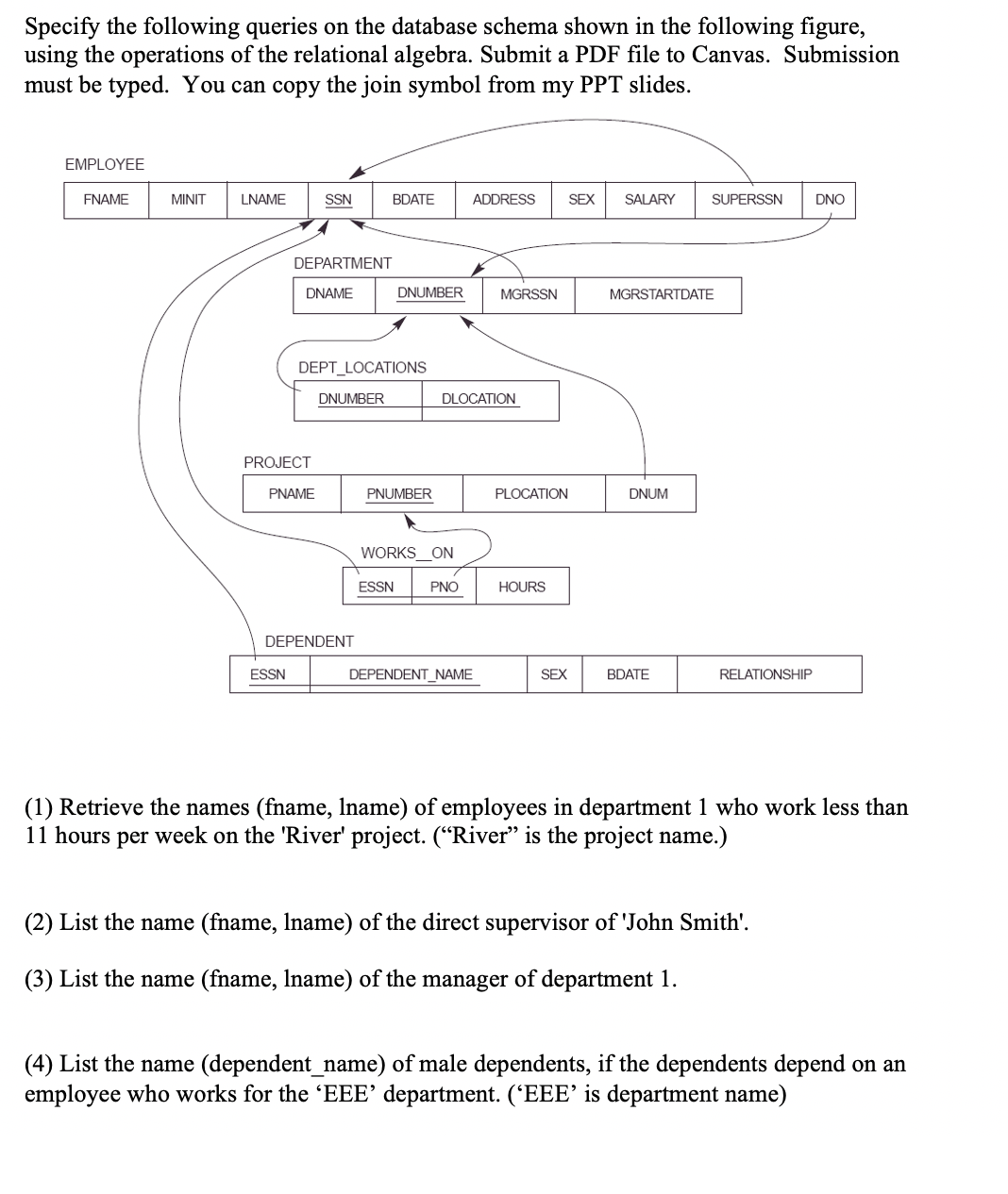 Solutions lives person-namestreetcity works person-name company-namesalary located-in company-namecity manages person-namemanager-name For the above schema the primary key for each relation is denoted by the underlined attribute provide. Codd CACM June 1970. Pirotte ACM SIGMOD Record 13-1 1982 pp.