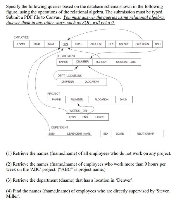 Specify The Following Queries On The Database Schema Chegg Com
